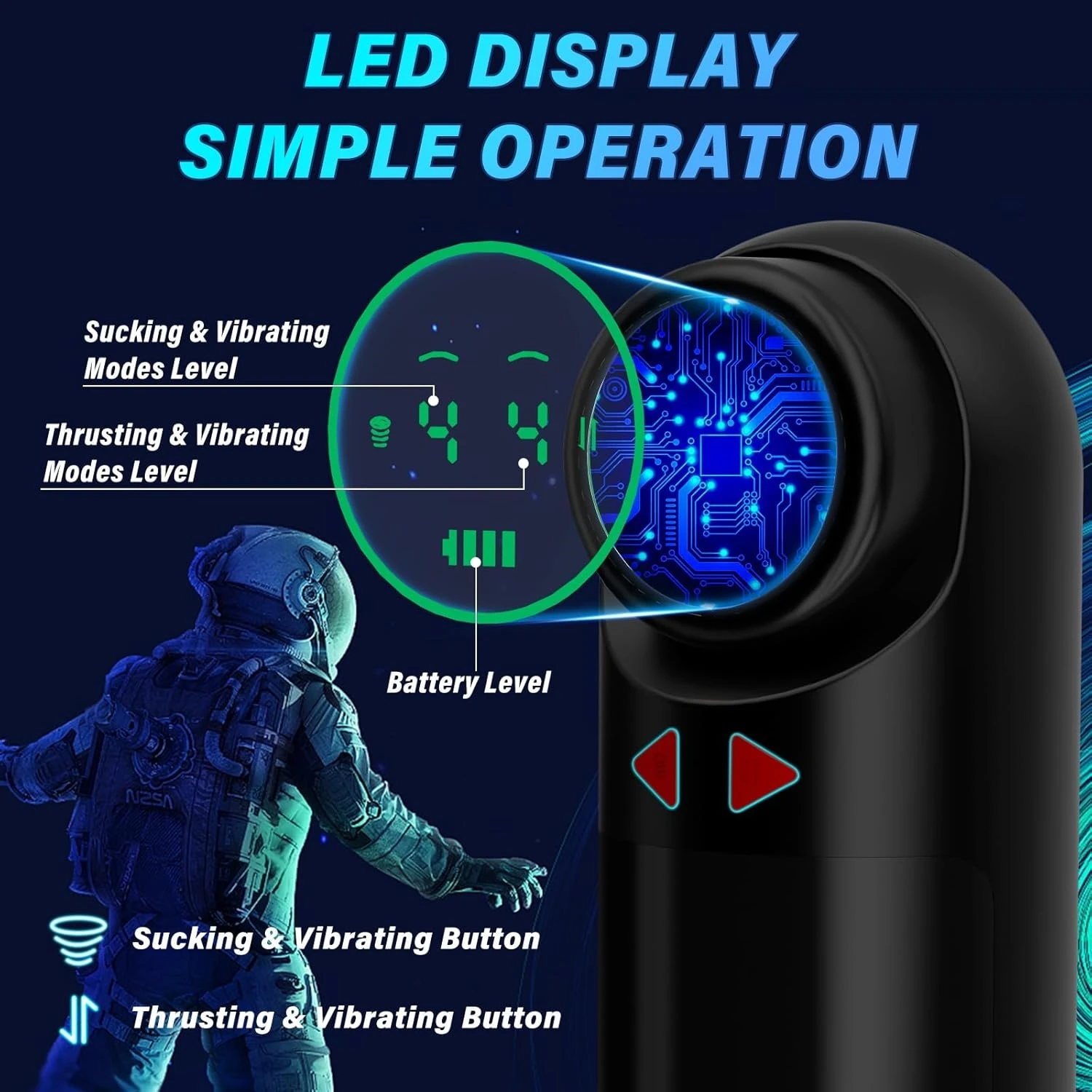 LED Display & USB Charging: Our male stroker has a smart digital display screen that shows suction, vibration and thrust levels as well as the current battery level in use. You can clearly know your favorite frequency and control it at will. Equipped with USB charging, coupled with on-screen power level prompts, ensure uninterrupted sexual fun, ready for your sex at any time.